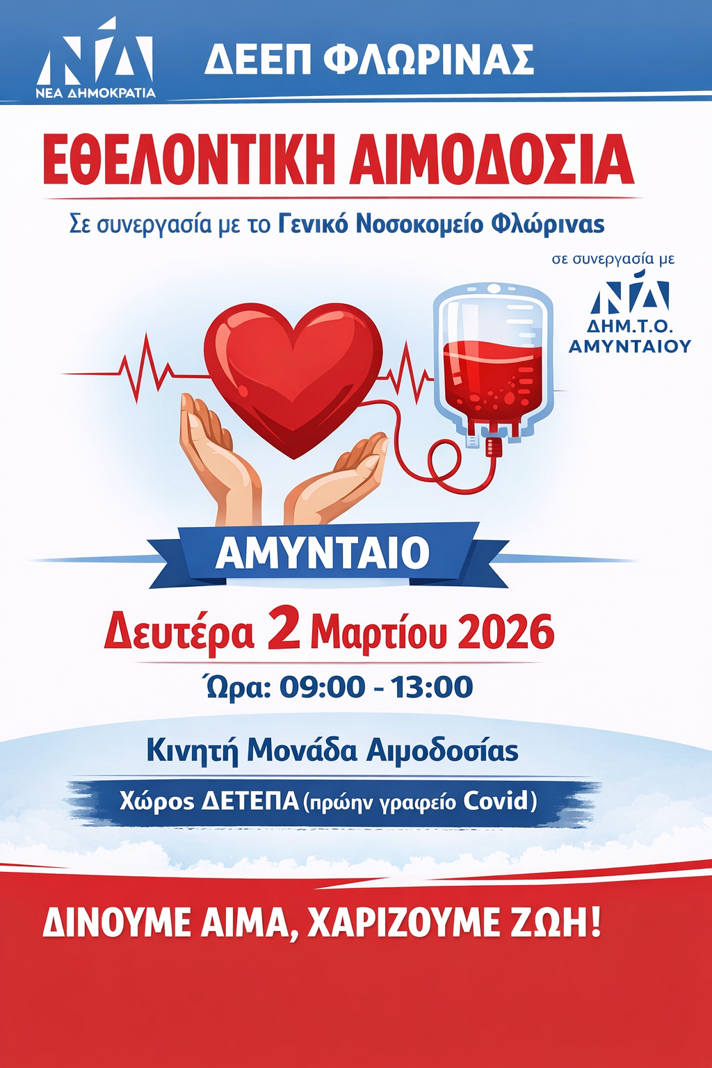 Αιμοδοσία στο Αμύνταιο από τη ΔΕΕΠ Φλώρινας και την Δημ.Το.Αμυνταίου ΝΔ