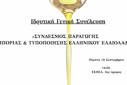 Ιδρύεται ο Σύνδεσμος Παραγωγής Εμπορίας Τυποποίησης Ελληνικού Ελαιολάδου (ΣΥ.Π.Ε.Τ.Ε.ΕΛ.) με την εκλογή…